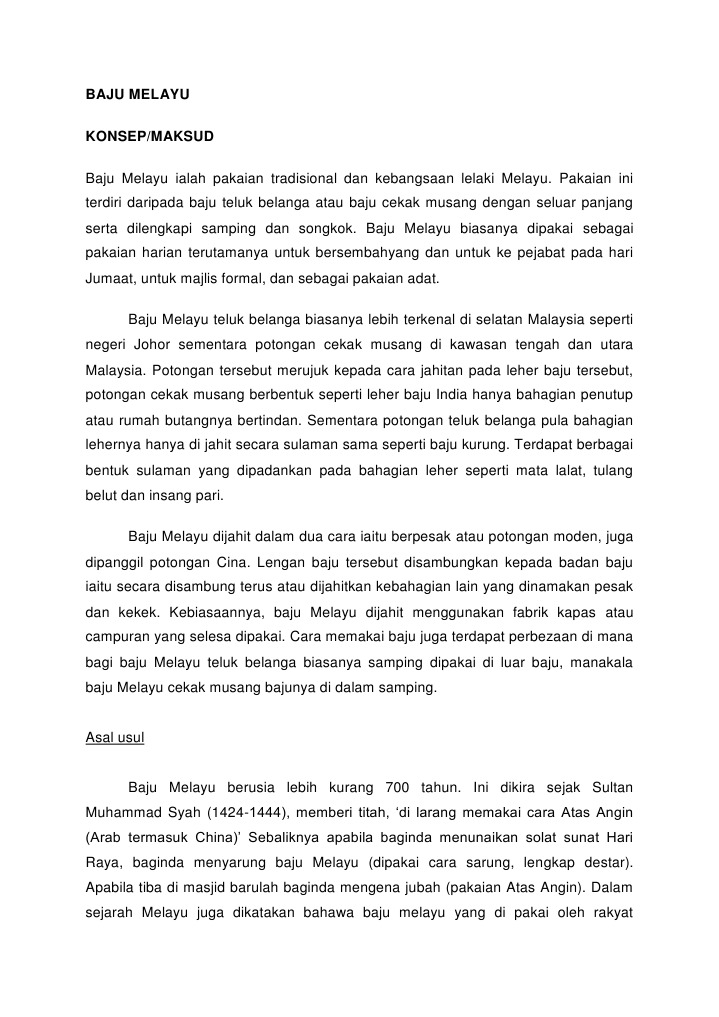 Zarf Olacak Ayirmak Asal Usul Baju Melayu Tradisional Kansaibishoku Net